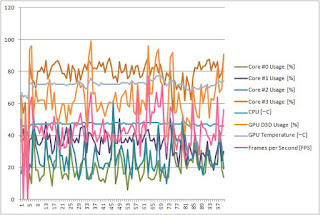 FPSは43.7とまあまあだがCPU負荷が一番高かった。GPUがGF9800と一番非力だったが、負荷は63.5%とあまり高くなかったのは意外。CPUが4コアとはいえ定格2.4GHzなのでシングルスレッド性能がボトルネックか?